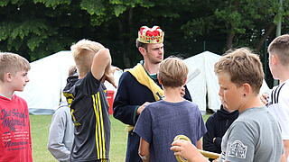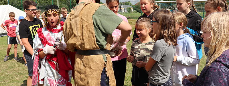 Unbeeindruckt von den sinkenden Temperaturen startete der zweite Tag unseres Lagers nach dem Frühstück mit einem kunterbunten AG-Block, in dem gebastelt, gebadet und viel gespielt wurde. Zwischendurch hatten die 140 Kinder die Möglichkeit sich bei der Planung des Zeltlagers in Form eines Parlamentes mit einzubringen. Nach der täglichen Lagertanzsession stärkte sich das Grunz 2019 dann für das am Nachmittag stattfindende Großspiel: Dem Kampf der Götter. Hierbei erspielten sich die Zelte Attribute wie Kraft oder Intelligenz, um am Ende den Gott der Unterwelt besiegen zu können. Obwohl die Temperaturen immer weiter sanken, erreichte die Stimmung innerhalb des Lagers am Abend noch einmal ihren Höhepunkt. Dort wurde nämlich eine Abwandlung der RTLDatingshow „Take me out“ geboten, in der die Kinder 1 Stunde Extra-Programm mit einem Betreuer gewinnen konnten. Insgesamt war es ein spaßgeladener Tag, der Freude auf mehr bereitet.