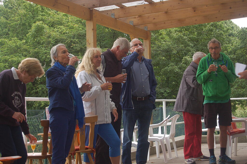 Eröffnet wurde das Sommerfest um 11 Uhr von der Tennissparte: Zum 40-jährigen Jubiläum der Tennissparte gab es einen kleinen Sektempfang mit netten Tennisfreunden, Aktiven, Ehemaligen und Gästen. Grußworte vom Kreistennisvorstand, Wolfgang Raube mit Geschenk (Tennisbälle), Grußworte von Ocke Börnsen; und Grußworte von Bürgermeister Bernd Wunder. Es wurde eine Fotowand präsentiert, über die sich alle sehr freuten und sie bewunderten. Bunte Spiele Einzel/Doppel auf Rotsand und im Strandsand (Beachtennis). Alles klappte wunderbar!