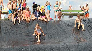 Fast 2 Stunden lang ging es dann hoch her auf dem A-Platz, niemand konnte sich vor einer ordentlichen Dusche schützen. Poolparty, Wasserrutsche, Feuerwehrschlauch und Rasensprenger durften dabei natürlich nicht fehlen.