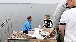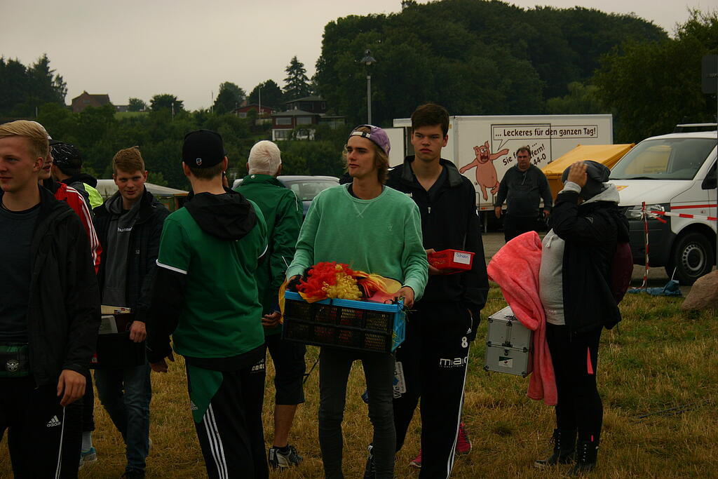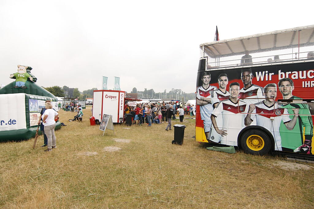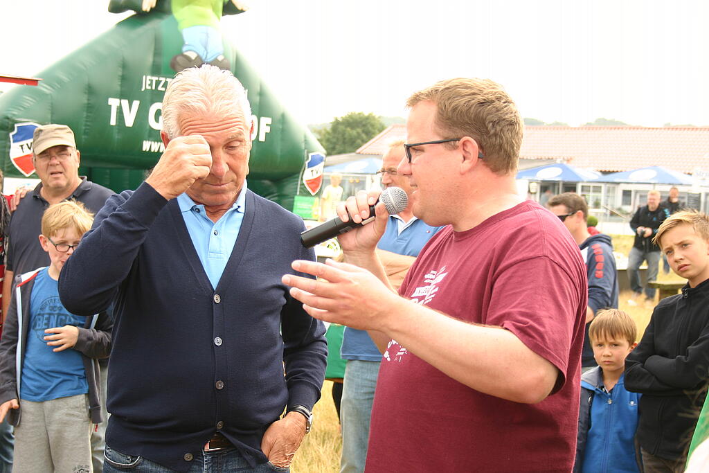 Erst in Philipp Lahms Händen in Rio, dann beim TV Grundhof in Langballigau. Das waren sicherlich die beiden wichtigsten Stationen des WM-Pokals in den letzten Monaten. Als einer von nur 63 ausgewählten Amateurvereinen durfte der TV Grundhof den Pokal auf seiner Ehrenrunde durch das Land der Weltmeister präsentieren. Insgesamt 797 Vereine hatten sich beworben, das Video und die schriftliche Bewerbung des TVG müssen also sehr überzeugend gewesen sein.Nach der erfolgreichen Bewerbung ging die Arbeit aber erst richtig los: Das Organisationsteam um Leif Nielsen, Torben Bonde, Sören Riechmann, Levke Schwennesen und Finn Jensen hatte alle Hände voll zu tun, um das geplante Strandfest in Langballigau zu realisieren. Insbesondere die Vergabe der maximal 2014 Tickets und das Rahmenprogramm forderten einen hohen Einsatz der Verantwortlichen. Unter dem Motto „grenzenlose Fußball-Liebe“ wurde die Gelegenheit genutzt, sich bei den ehrenamtlichen Übungsleitern und Schiedsrichtern, sowie den Helfern des Events zu bedanken, indem sie freien Eintritt zum Pokal erhielten. Vereinsmitglieder erhielten ein vergünstigtes Vorkaufsrecht, die restlichen Karten wurden externen Fußballfans im freien Verkauf angeboten. Als Rahmenprogramm wurde ein Strandfest geplant, das Jung und Alt sowie insbesondere Familien ansprechen sollte.Kurz vor dem Event gab es dann nochmal Anlass zur Sorge: Der Wetterbericht kündigte Regen, Sturm und Gewitter an. Glücklicherweise irrt auch der beste Wetterbericht mal, denn wir kamen mit ein paar kurzen Schauern und einem Gewitter noch glimpflich davon. Oder Unwetter sind einfach nicht mehr das, was sie mal waren. Der Rest war ein Traum: Über 100 ehrenamtliche Helfer aus dem Verein und seinem Umfeld sorgten für einen unvergesslichen Tag für fast 2000 Besucher des WM-Pokal-Events. Vielleicht wären bei längerem Sonnenschein ein paar mehr gekommen, aber die Stimmung hätte kaum besser sein können. Viele fröhliche Gesichter, tolle Fotos mit dem Pokal oder Stargast Klaus Fischer, glückliche Gewinner der Turniere im Beachsoccer, Fußballtennis, Tischfußball und Bubblesoccer sowie großer Andrang an den reichhaltigen Catering-Angeboten bezeugten die einmalige Atmosphäre.Im Anschluss an den Event erhielt der TV Grundhof bereits viel Lob von Besuchern, Gästen und der Presse, die größte Auszeichnung gab es aber ein paar Wochen später. Am 23.08. ehrte der DFB die drei besten Amateurvereine der Ehrenrunde bei einem Festakt mit Weltmeister Benjamin Höwedes. Der TV Grundhof wurde dabei als zweitbeste Station der Ehrenrunde ausgezeichnet! Leif Nielsen, Finn Jensen und Torben Bonde nahmen stellvertretend für den Verein und alle Mitorganisatoren und Helfer des Events an der Ehrung teil und freuten sich über den großarteigen Erfolg für den TVG und über ein Foto mit Weltmeister Benni Höwedes.