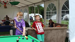 Für alle begann der Tag um 8:00 Uhr morgens mit guter Musik zum Aufstehen. Die fantastische Musik von Alexander Marcus begleitete die Kinder bis zum Frühstück. Um das Zeltlagergefühl im gesamten Lager zu wecken gab es vormittags einen AG Block mit vielen verschiedenen Angeboten. Neben sportlichen Aktivitäten wie „knolzen“, Völkerball und Runde gab es Brettspiele und einige andere kreative AGs mit Glitzer und Farben.